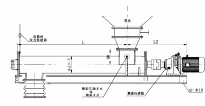 6、穩(wěn)流給料螺旋和計(jì)量輸送螺旋之間為連接, 可根據(jù)現(xiàn)場(chǎng)要求任意調(diào)整水平安裝角度。